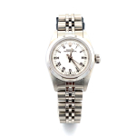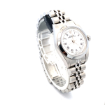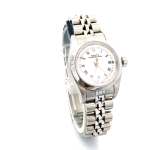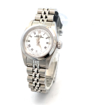 Crafted in 1998, this Lady’s Rolex features a stainless-steel case paired with a smooth bezel, highlighting the refined simplicity of the design. The pristine white dial is accented with a combination of stick and Roman numeral markers, creating a clean, versatile look that complements both professional and casual attire. The Jubilee bracelet adds comfort and classic Rolex elegance, completing a timepiece that’s as functional as it is beautiful.