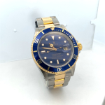 Produced in 2018, this 40mm Submariner features a stainless-steel Oyster case paired with 18k yellow gold accents throughout the bezel, crown, and bracelet links. The deep blue dial — accented with gold surrounds and luminous hour markers — radiates charm and sophistication, while the matching blue aluminum bezel insert delivers a rich maritime look admired in the world’s finest luxury timepieces.